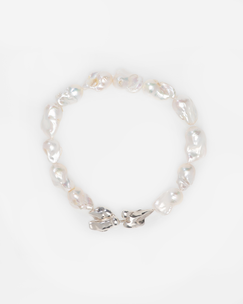 Freshwater Baroque Pearls with a clasp made from recycled 925 Silver. The clasp is handmade and designed to wear on the frontside of the neck. The Pearls come from Greece and are considered ‘B’ class Pearls. They can have some flaws or imperfections but they are still big, beautiful and also deserve to shine bright. All Pearls are unique and organic shaped #ecofriendly #zerowaste